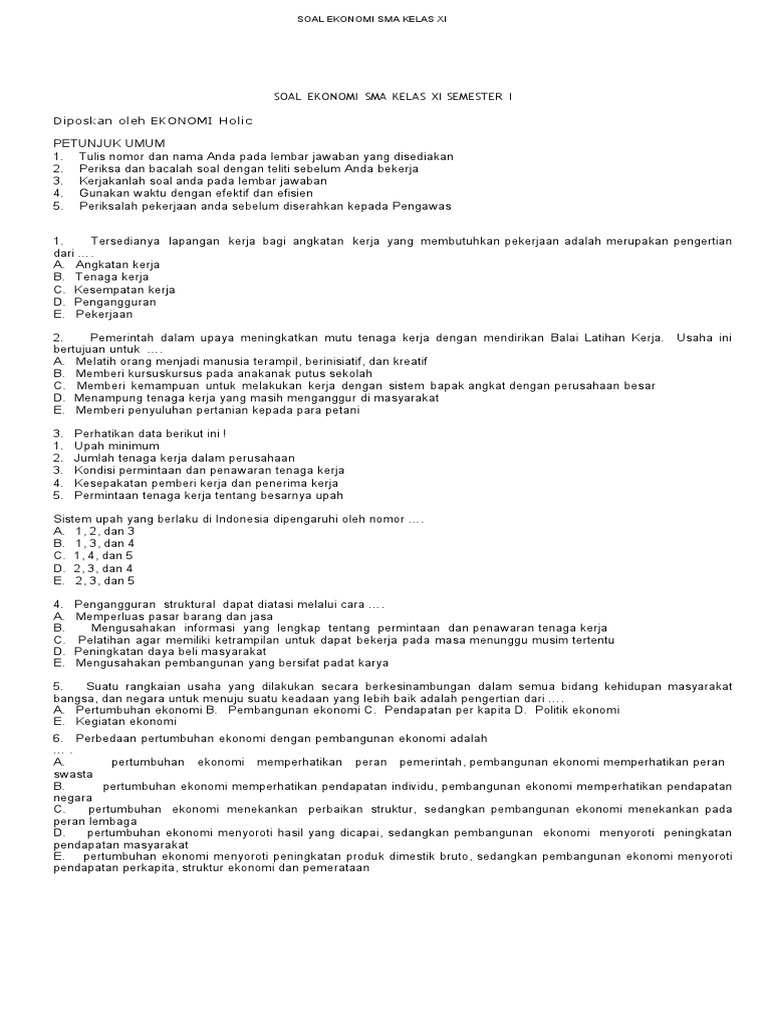 Berikut ini 15 contoh soal pilihan ganda tentang biografi bahasa indonesia dan jawabannya sma kelas 10 x. Contoh soal pilihan ganda dan jawaban ekonomi kelas xi semester 1 by umar danny 3 comments tulisan soal uji kompetensi ekonomi untuk siswa kelas xi sma/smk/ma/sederajat, berisikan materi tentang ketenagakerjaan dan pembangunan ekonomi. Dimulai dari pertanyaan nomor 11, berikut dibawah ini soal dan. Setiap anggota keluarga memiliki kewajiban dan hak yang berbeda satu dengan yang lainnya hak yang diperoleh seorang anak dalam keluarga adalah hak… Soal bahasa inggris kelas 6.